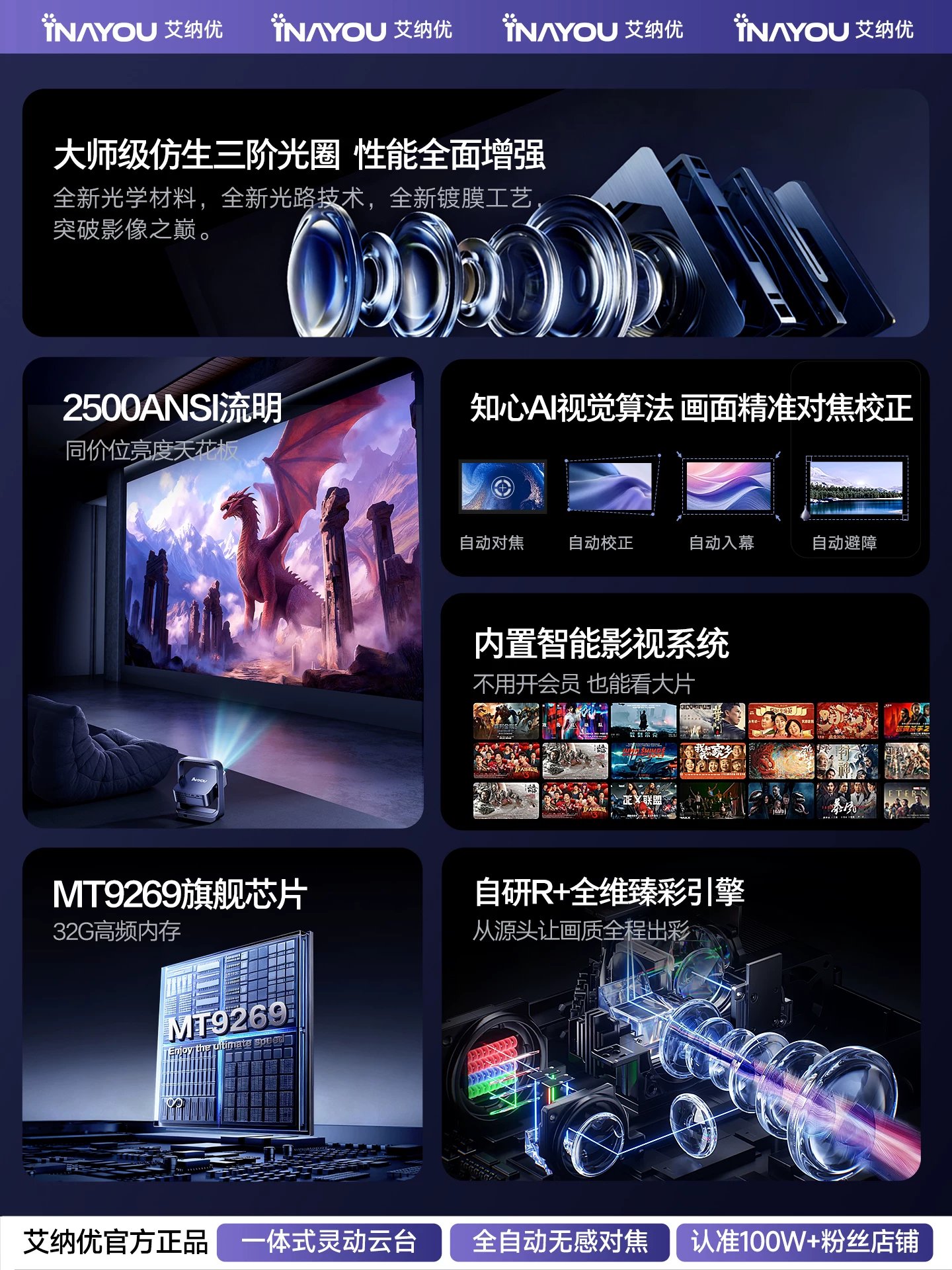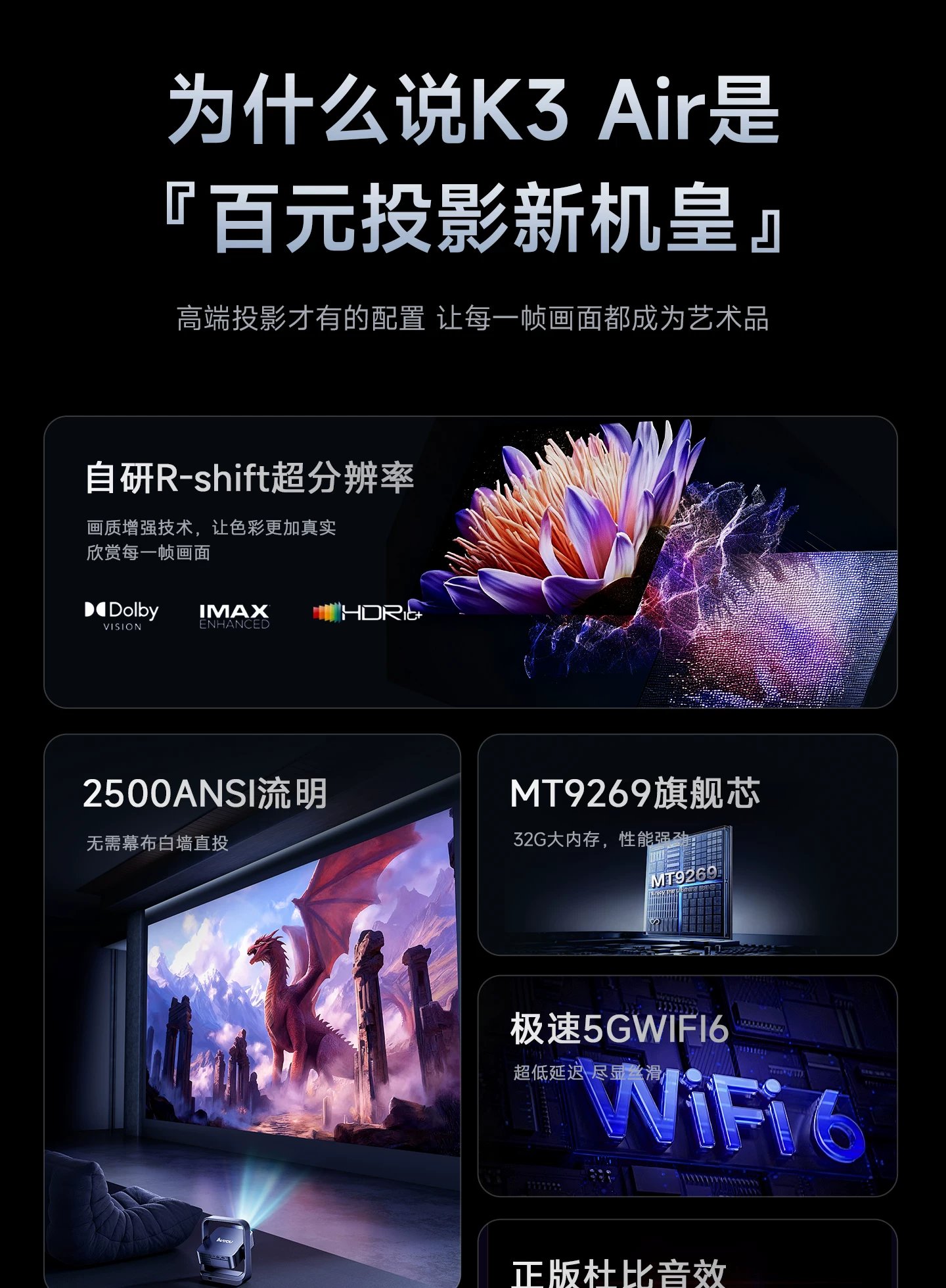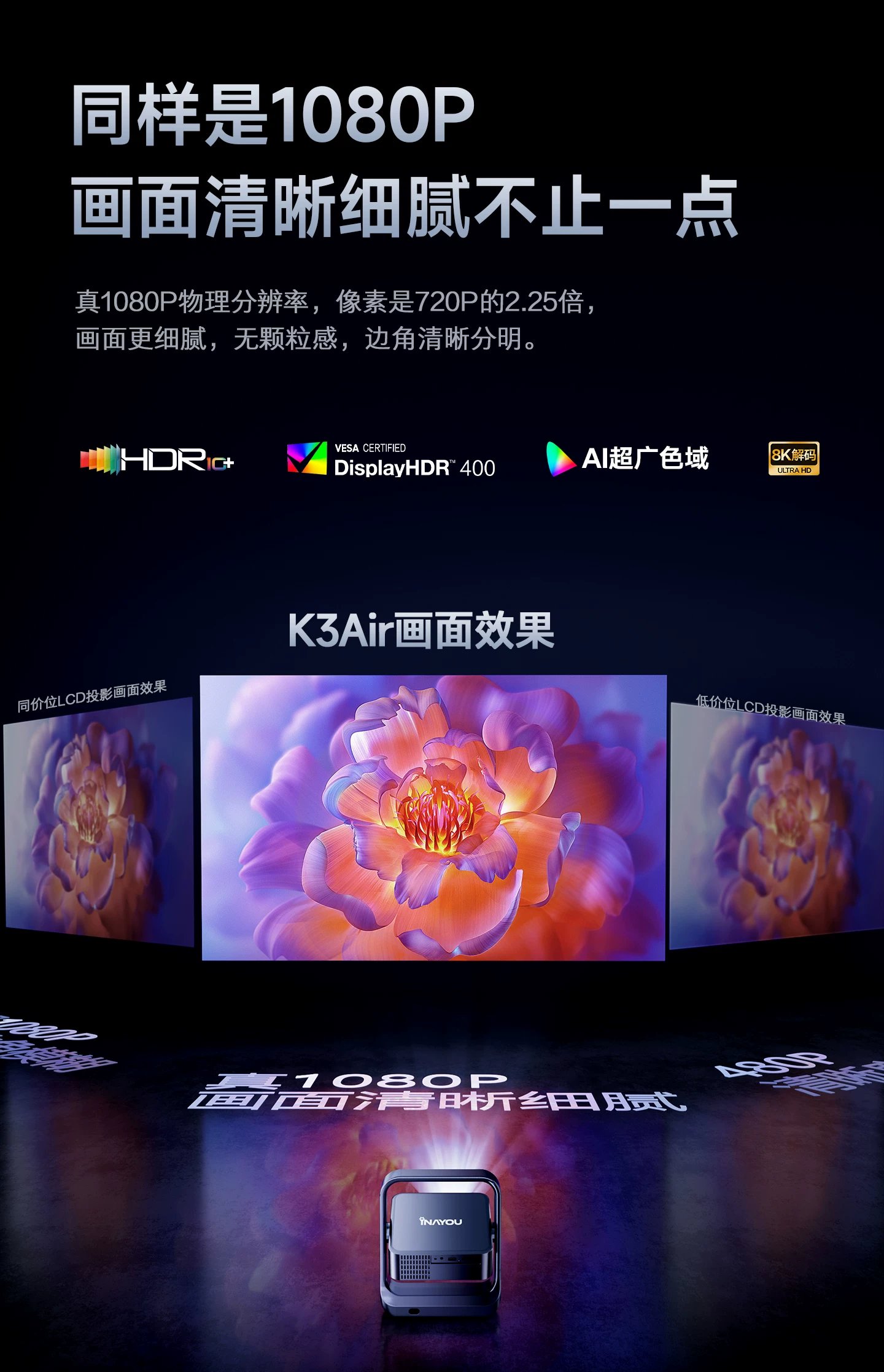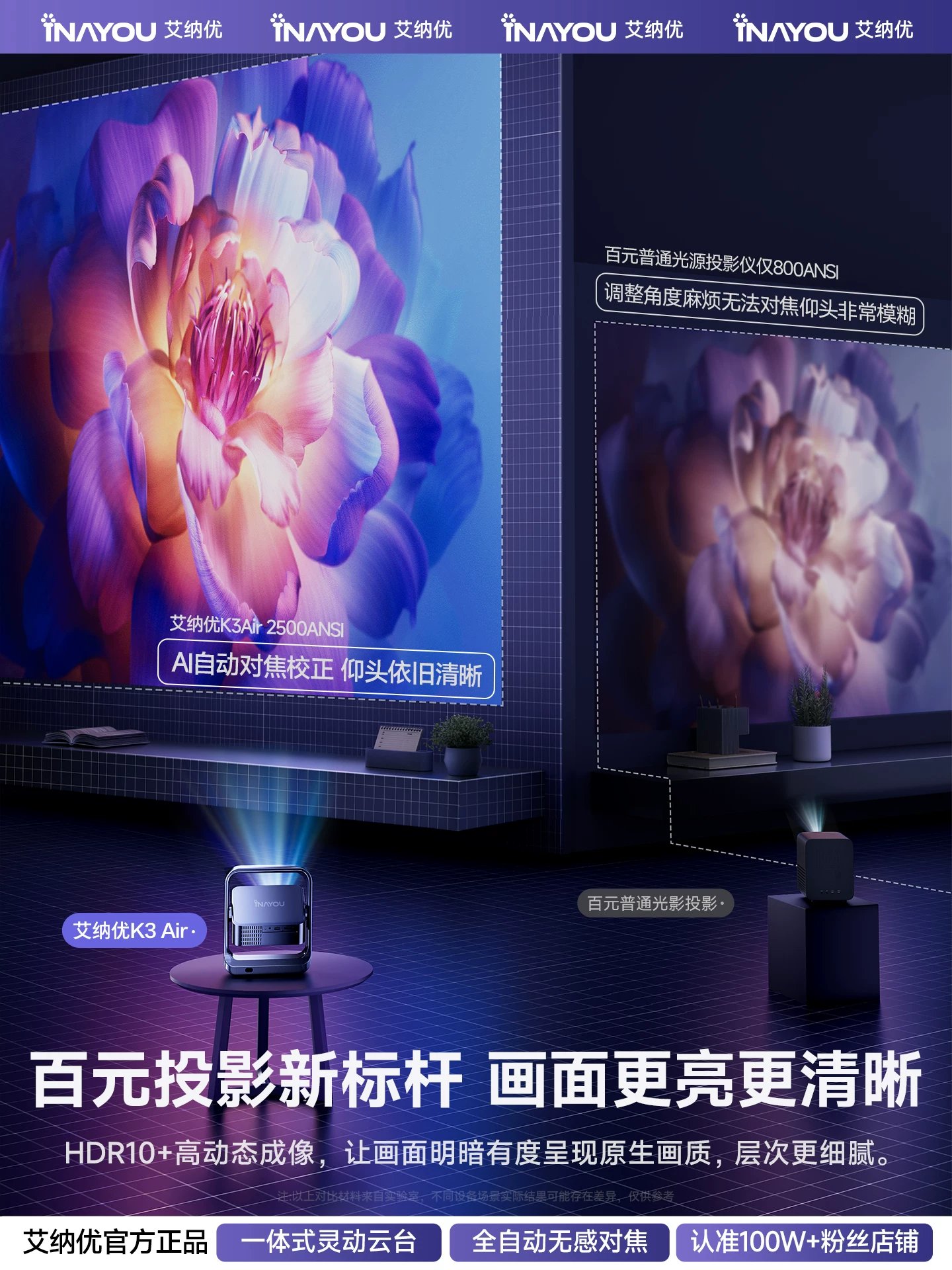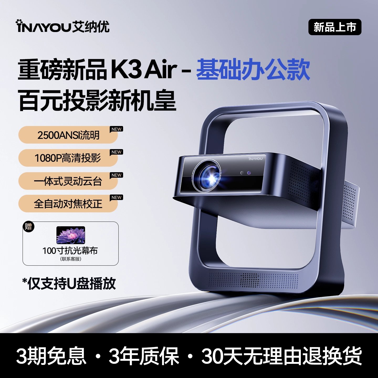 | sort by color | [Basic Office Version] Only supports USB flash drive playback and computer screen mirroring., ✅【Flagship Smart Model】2500 lumens high brightness, fully automatic focus correction, integrated flexible gimbal |