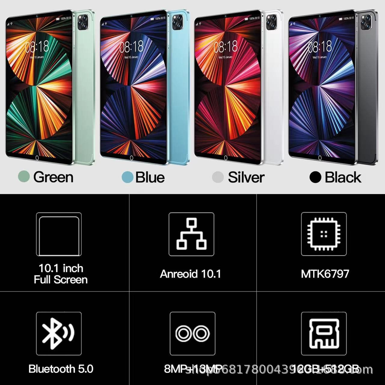| Color | Gold, Light gray, Green, Sky Blue, Black |