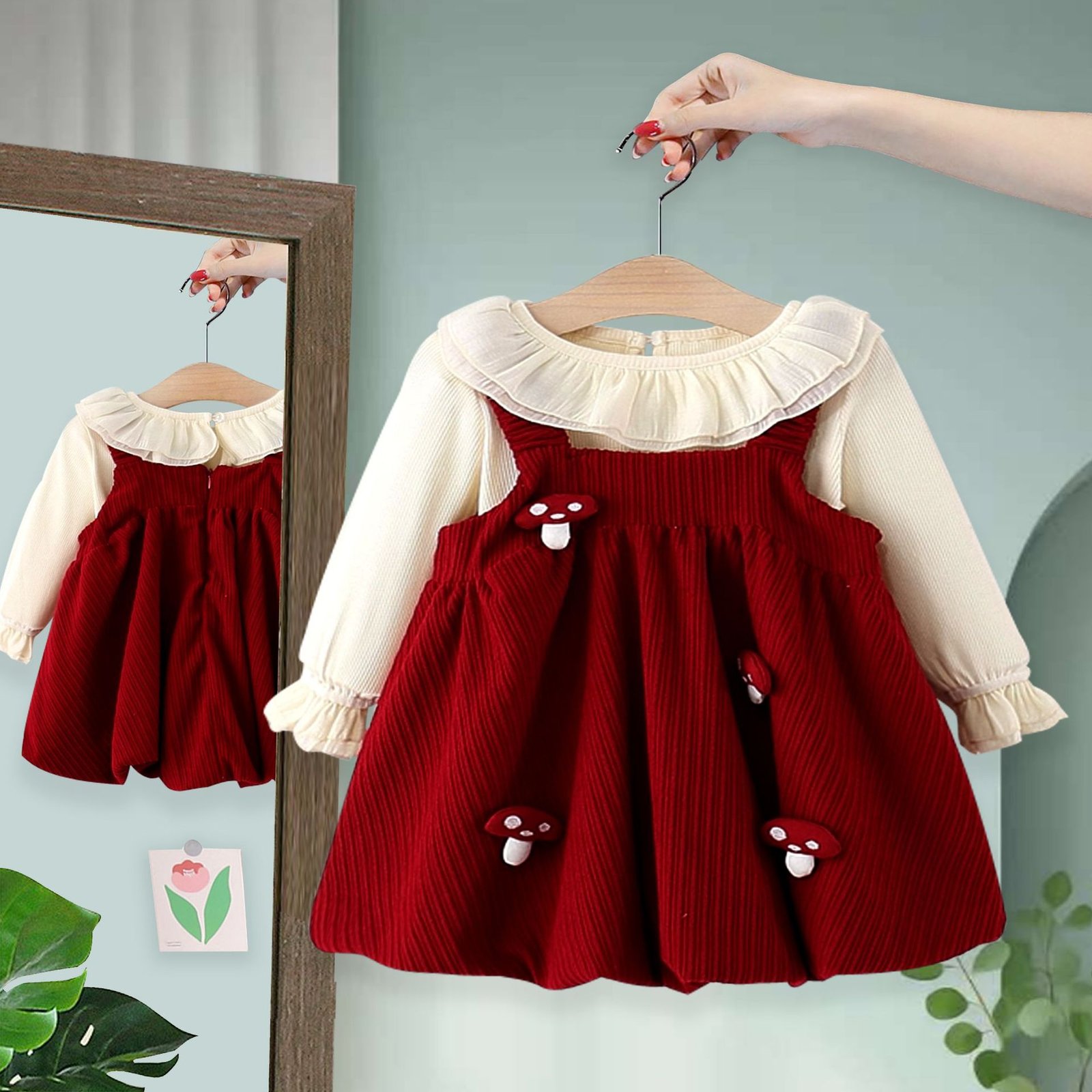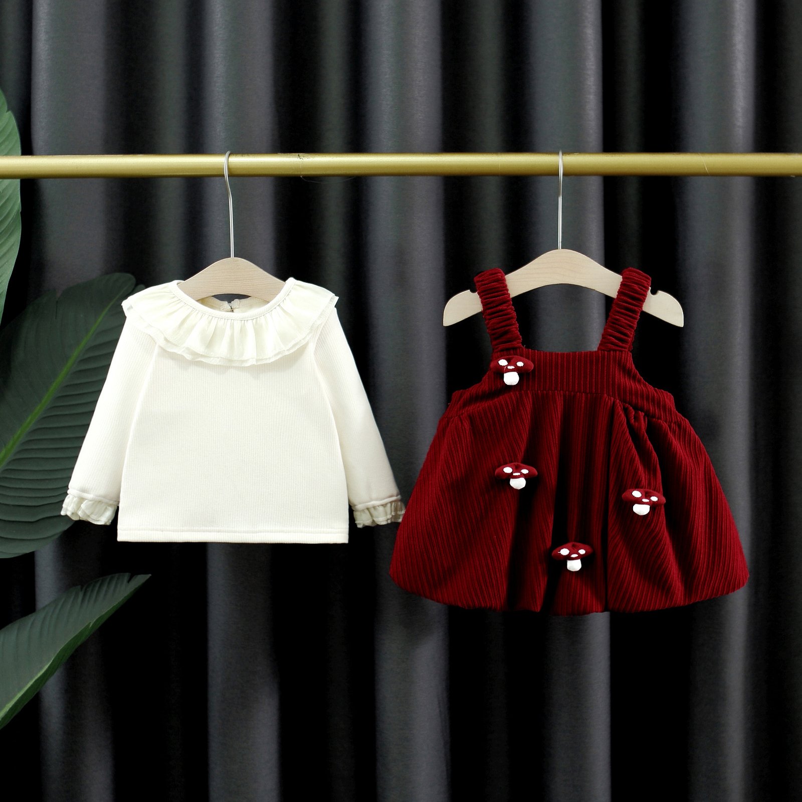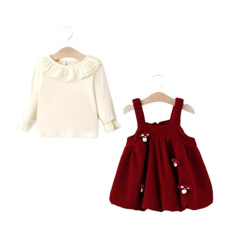 Be the first to review “Autumn and Winter Kidsren's Clothing, Fashionable Baby Girl's Velvet Bottoming Shirt, Mushroom Suspender Skirt, Two-Piece Girl's Suit 5207 – 阿里巴巴”