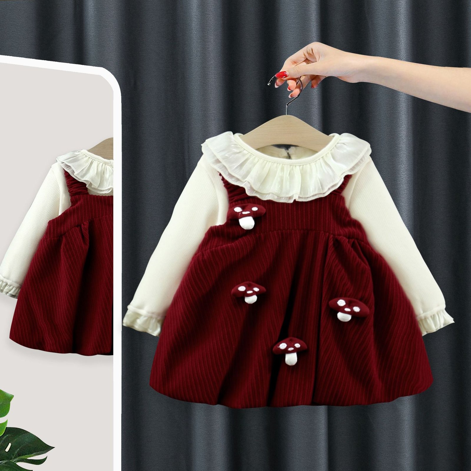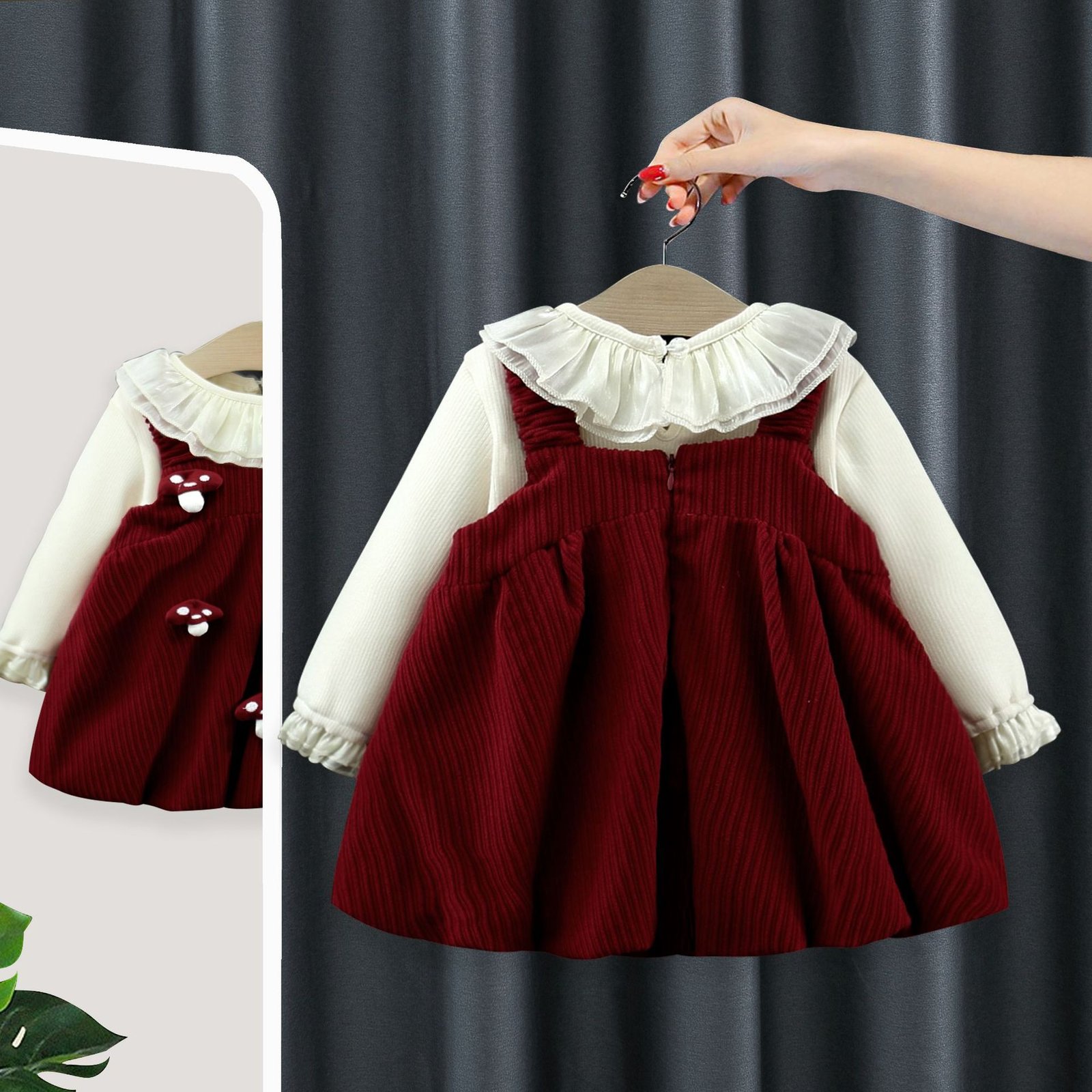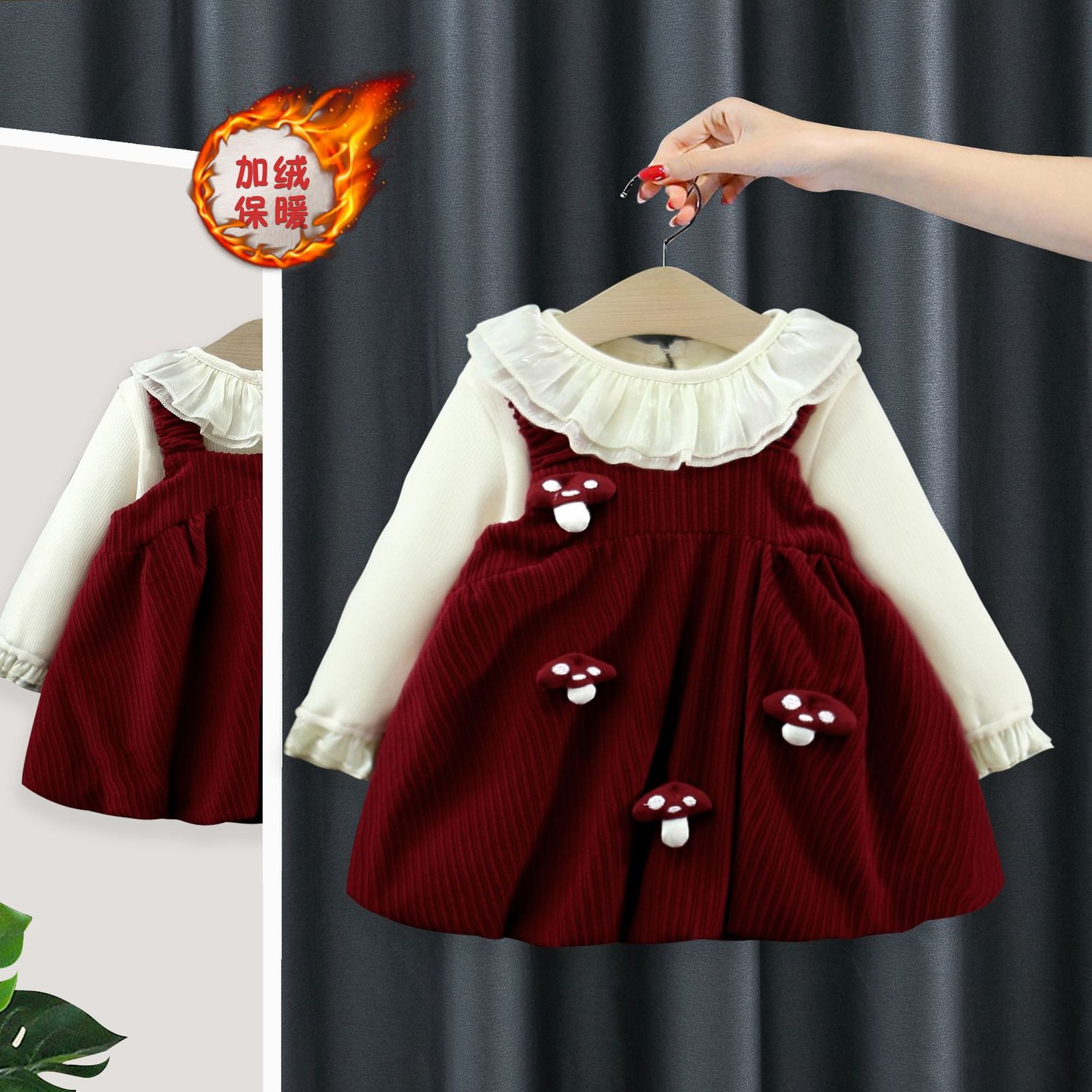 Be the first to review “Autumn and Winter Kidsren's Clothing, Fashionable Baby Girl's Velvet Bottoming Shirt, Mushroom Suspender Skirt, Two-Piece Girl's Suit 5207 – 阿里巴巴”