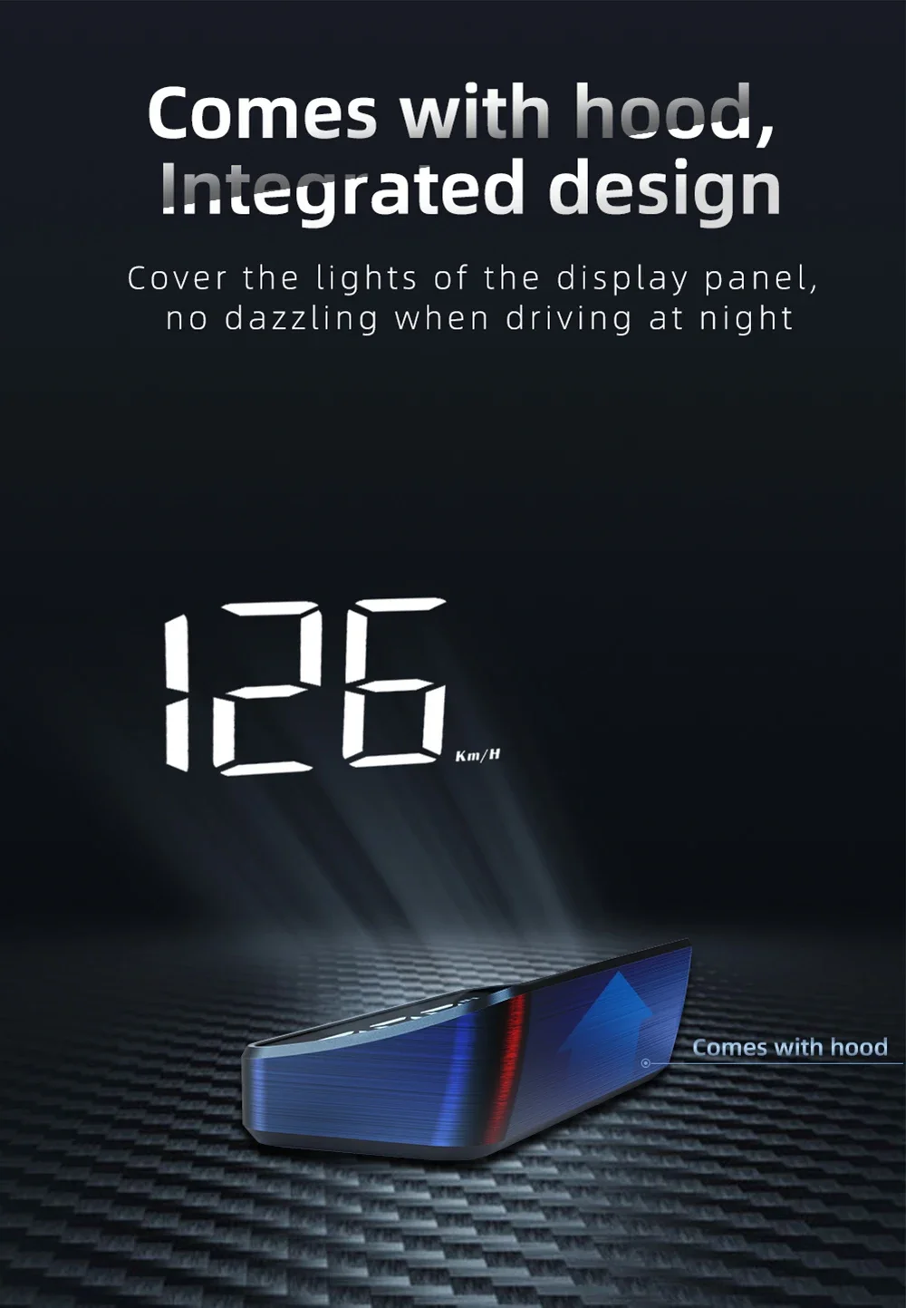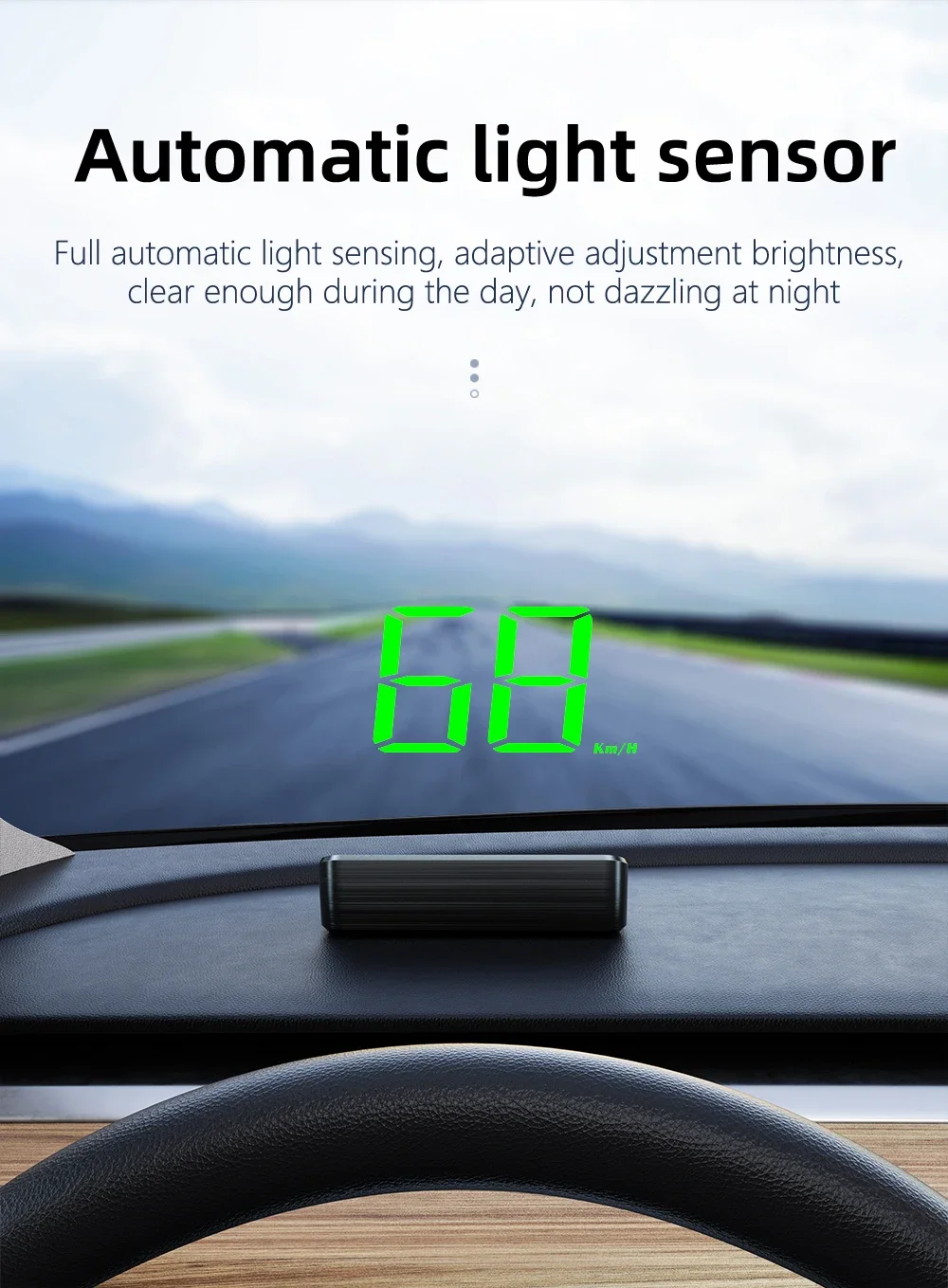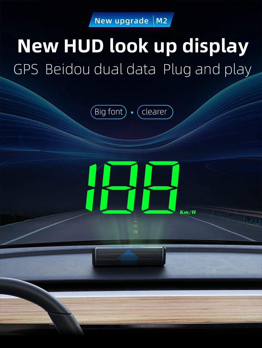 4. Multi-function display: This HUD can display vehicle speed information, and can even receive signals from American GPS satellites to accurately display current vehicle speed information.