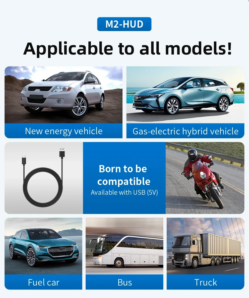 3. Easy installation: The car HUD does not need complicated wiring installation, just place it on the dashboard, and then insert the cigarette through the USB adapter. Adapt to a variety of models, whether it is a family car or a commercial vehicle can be used.