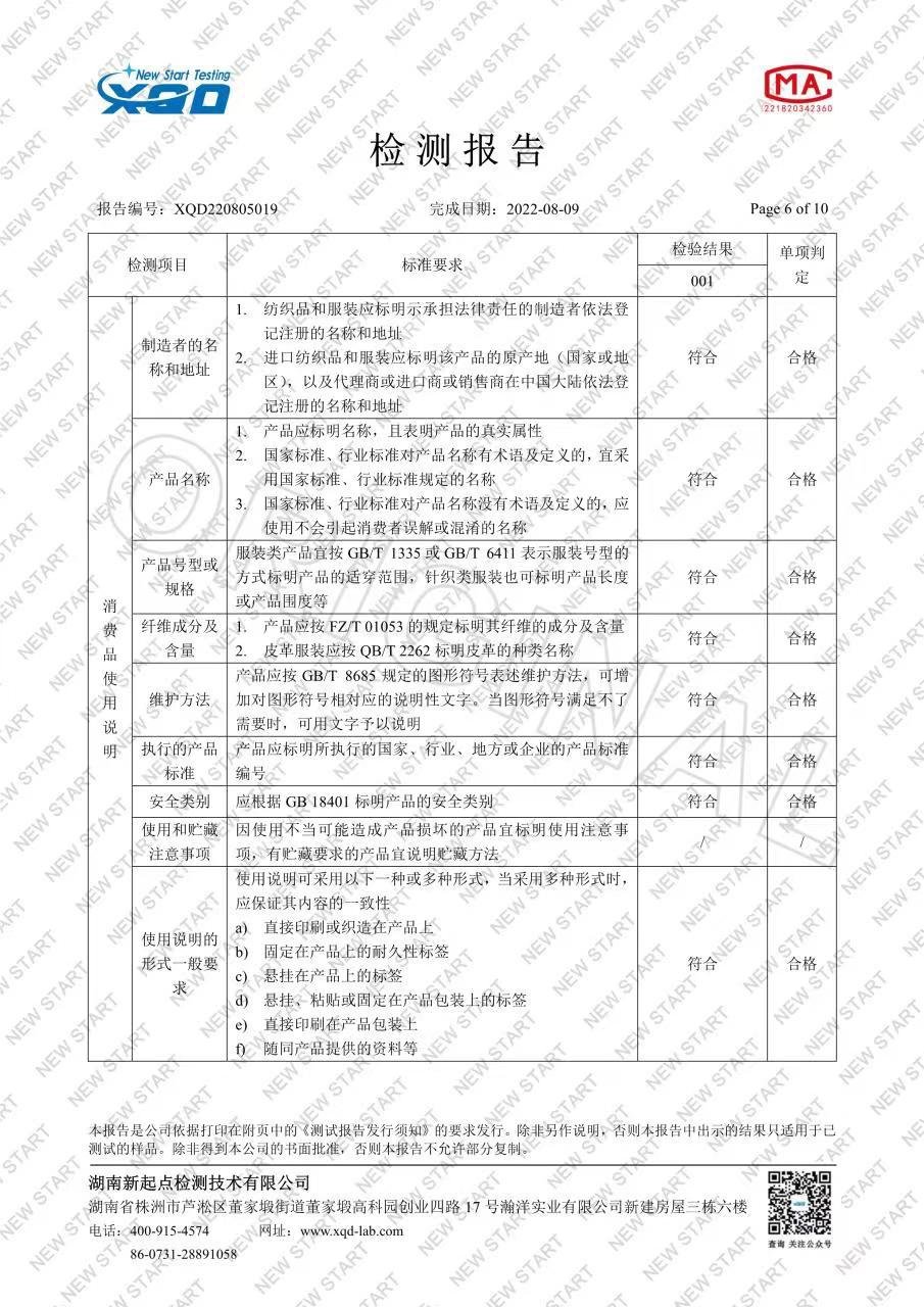 Main fabric component content: 95