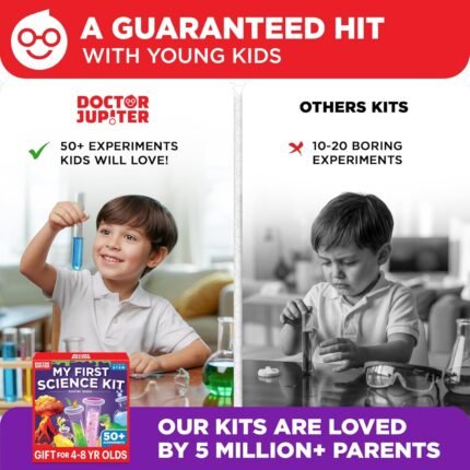 ✅ EXCITING SCIENCE KIT: Our innovative science kit features over 50+ mind-boggling experiments, igniting a passion for science in children and inspiring them to become problem solvers. ✅ FUN STEM LEARNING: Engage kids in active exploration of STEM concepts, fostering critical thinking through questioning, observation, and discovery, all while enjoying themselves immensely. ✅ PERFECT GIFT FOR SCREEN-FREE FUN: Give your child the gift of 50+ days of screen-free entertainment with our science kit, perfect for birthdays, holidays, Christmas or any occasion. Both girls and boys will feel like real scientists as they delve into magical experiences like Making Dinosaur Squishies, Infinity Soap Volcano, Making Oobleck, Exploading Colors, Underwater Volcano, Candy Volcano, Making Perfumes and Face Mask, etc. ✅ EASY TO FOLLOW ALONG: This science kit includes instruction manuals that are well-illustrated in a step-by-step format, ensuring a seamless experience for both children and adults to understand and successfully perform all the experiments. ✅ HIGHEST STANDARDS IN TOYS: This kit meets all the U.S. safety standards of ASTM F963-17. Doctor Jupiter takes utmost pride in making highest quality of science kits & other learning toys backed by years of research & development. With premium equipment, innovative tools and comprehensive instruction manuals we are sure to provide a perfect experience for you & your child. If you are still not satisfied, we will refund you 100%, without asking any questions!