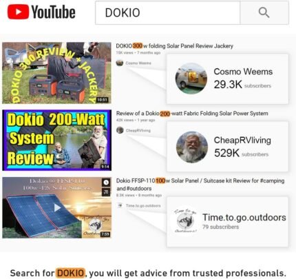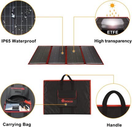 Be the first to review “DOKIO 220W 18V Portable Solar Panel Kit Folding Solar Charger with 2 USB Outputs for 12v Batteries/Power Station AGM LiFePo4 RV Camping Trailer Car Marine”