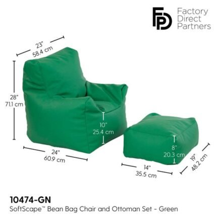 Be the first to review “Factory Direct Partners 10474-GN SoftScape Bean Bag Chair and Ottoman Set, Furniture for Kids, Libraries or Home – Green, Large”