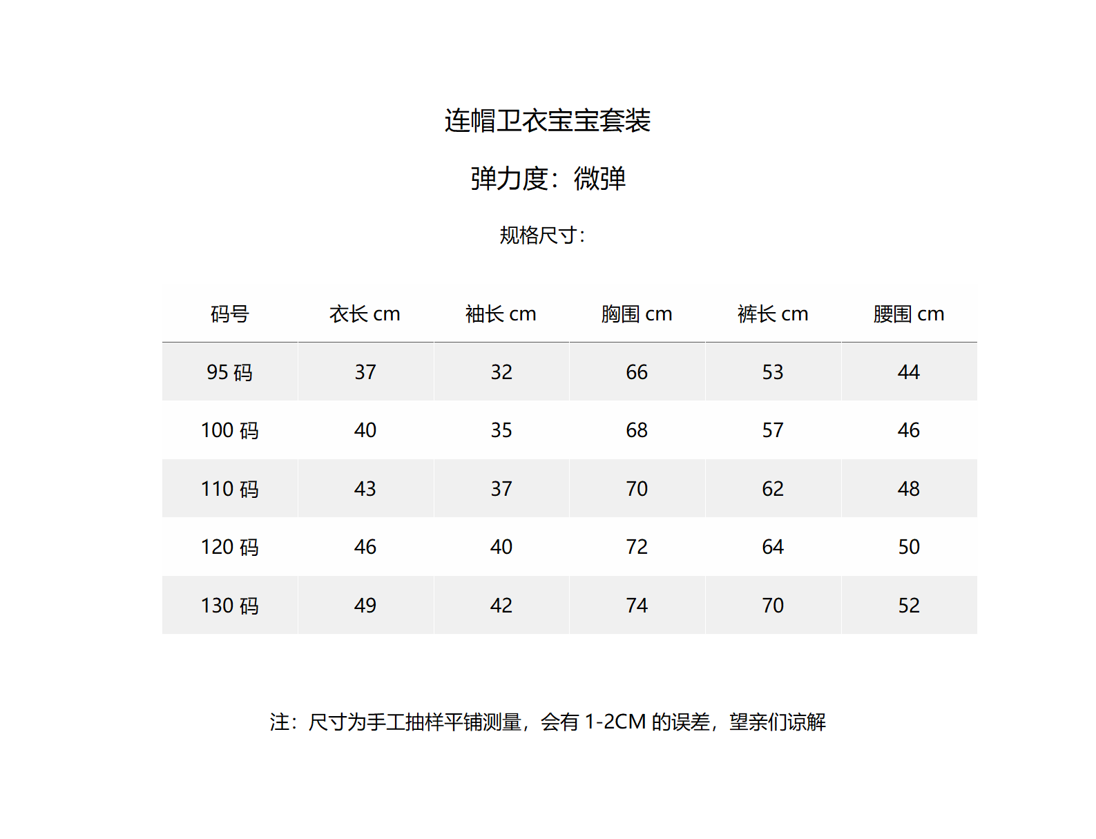 95cm, 100cm, 110cm, 120cm, 130cm