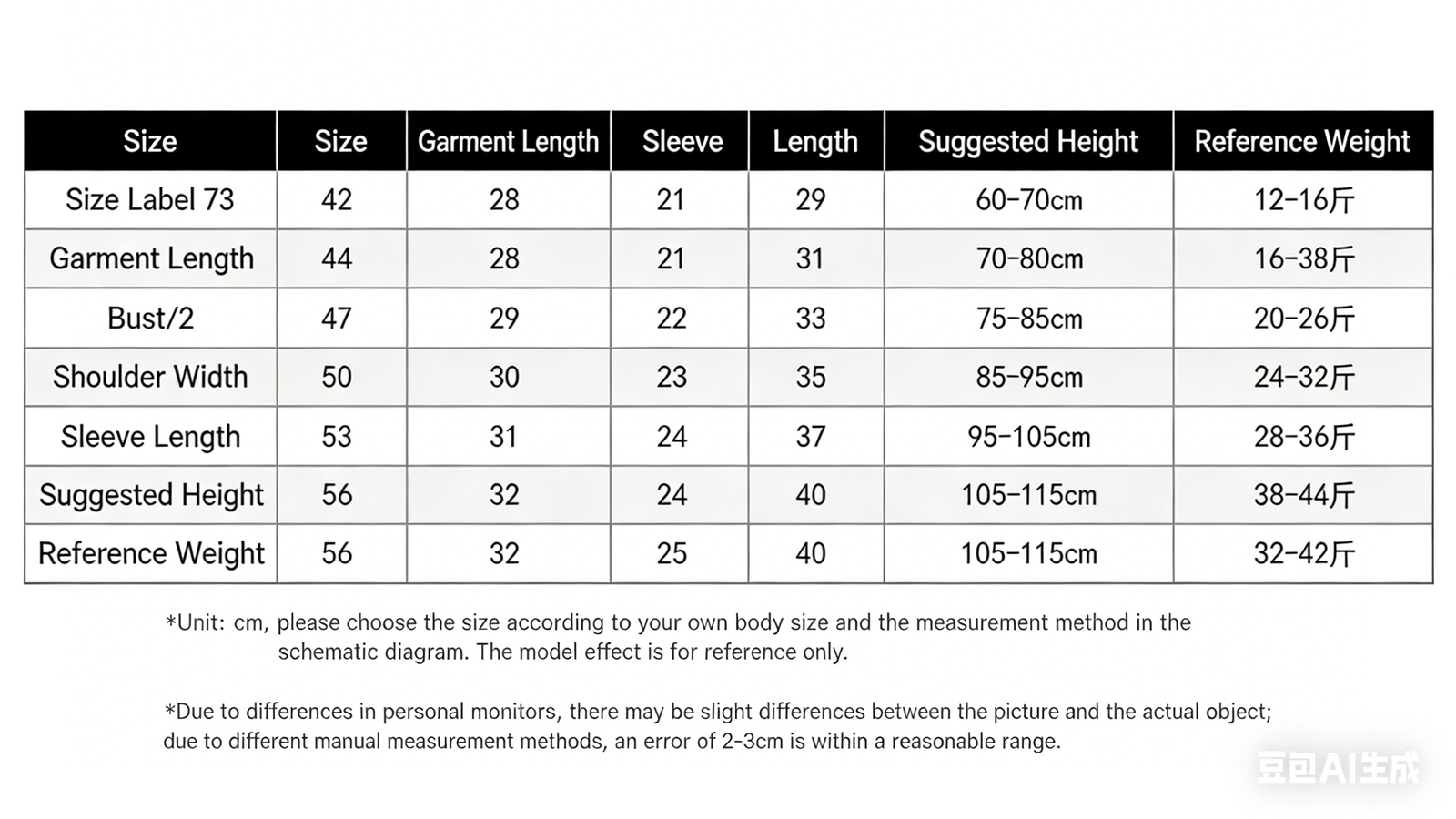 | Suitable for height | 73, 80, 90, 100, 110, 120 |