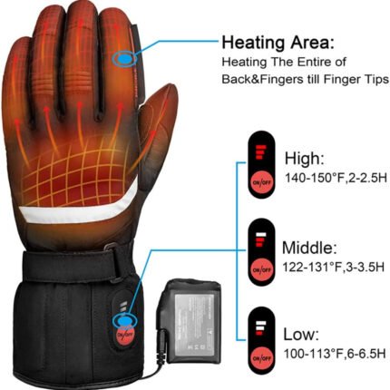 Advanced Heating Technology: Equipped with 7.4V 2200mAh Li-ion batteries and a 3-setting temperature controller, these electric heating gloves offer adjustable warmth levels. The far-infrared fiber heating elements cover the entire fingers and fingertips, benefiting individuals with Raynaud’s, arthritis, poor circulation, and stiff joints.