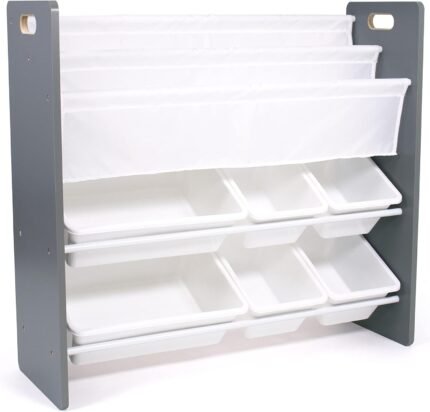 Humble Crew Inspire Kids Read n’ Play 6 Bin Toy Organizer and 2 Tier Bookrack