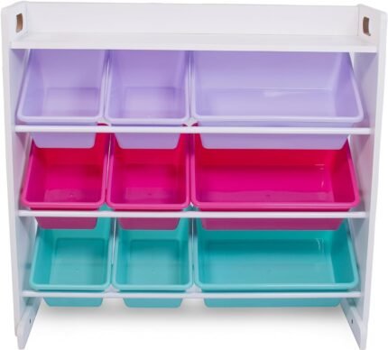 Stylish & Functional Design: With its all-white wood finish and colorful pink, purple, and aqua bins, this toy organizer blends seamlessly with any decor. It’s a stylish and practical addition to bedrooms, nurseries, playrooms, and classrooms! 🎨
