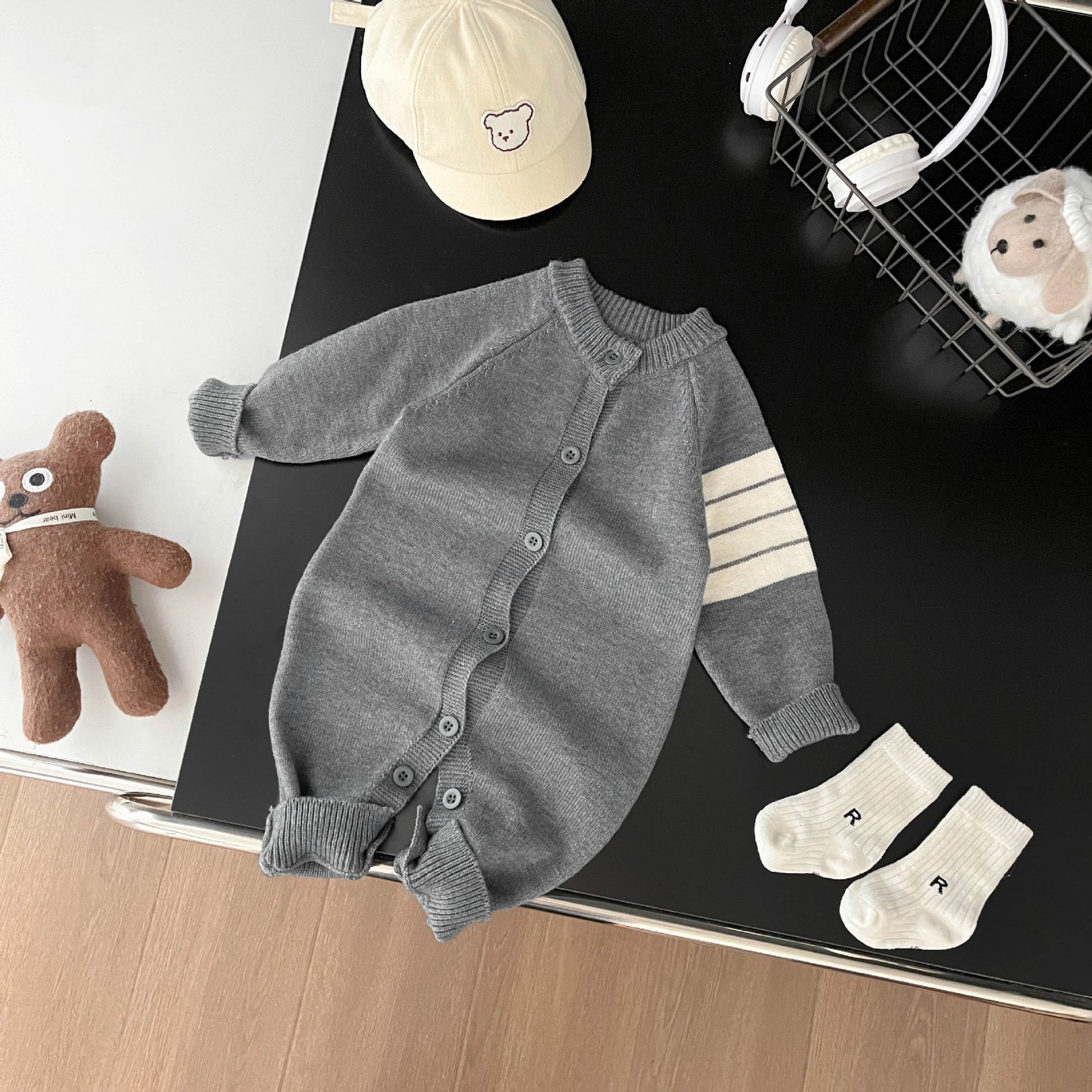 Be the first to review “ins spring and autumn infant casual three bars knitted wool jumpsuit men and women baby Western style romper romper – 阿里巴巴”
