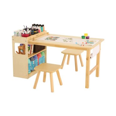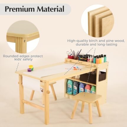 Be the first to review “Kids Art Table and 2 Chairs with Roll Paper, Craft Table with Large Storage Shelves, Drawing Desk, Kids Activity Table and Study Table, Activity & Crafts for Children Wooden Furniture”