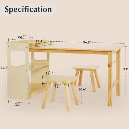 • Easy Assembly & Storage: Our children’s table and chair set comes with a convenient small bookcase for storage and reinforced legs for stability. With two sturdy chairs included, assembly is a breeze and designed to last for years! 🛠️