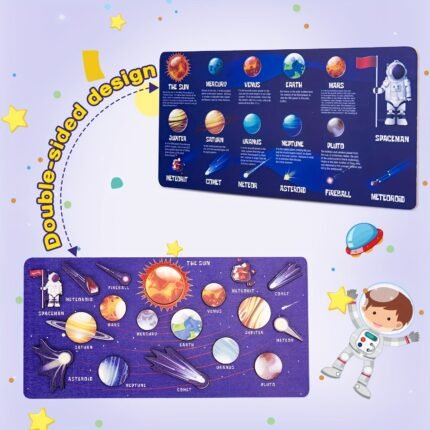 👶 Multiple Developmental Benefits: Our space puzzles offer a wealth of developmental benefits for children. Through planet matching, kids enhance their cognitive skills, fine motor abilities, and hand-eye coordination, all while immersing themselves in the wonders of outer space.