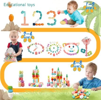 🌈 Get ready to level up your playtime with these Montessori Wooden Stacking Blocks! 🎮 Designed for our little learners, these fun educational toys are perfect for toddlers aged 12 months and up. 🧒🏽💡 Created by BigShu, a top player in the toy industry, these stacking blocks will enhance your child’s cognitive skills while providing endless hours of entertainment. Made from high-quality wood, these blocks are built to last, ensuring years of imaginative play. So, get ready to stack, create, and explore with these awesome Montessori Wooden Stacking Blocks!