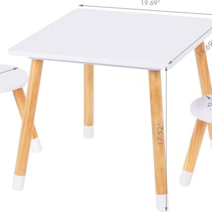 📏 Perfectly Sized: Designed with kids in mind, our table and chairs set boasts ideal dimensions for comfortable use. The assembled table measures 19.69 inches wide by 19.69 inches deep by 17.52 inches high, while the chairs measure 11 inches wide by 11.5 inches deep by 20 inches high. It’s the perfect fit for children from one year old to primary schoolers.