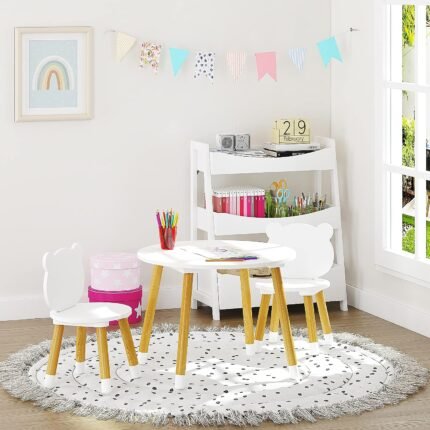 🐻 Cute and Safe Design: Our kid’s table and chairs feature adorable bear-shaped chairs that stimulate children’s curiosity and serve as educational toys. The table’s rounded curvature ensures child safety by preventing sharp corners that could cause injury, perfect for toddlers aged 3-10 years old.